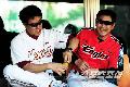 넥센 김시진 감독과 한화 한대화 감독이 8일 경기를 앞두고 만났다. 김시진 감독은 자신을 찾아온 한대화 감독에게 직접 음료수 병을 따주며 손님 대접을 하고 있다.목동=조병관 기자 rainmaker@sportschosun.com/2011.09.08/